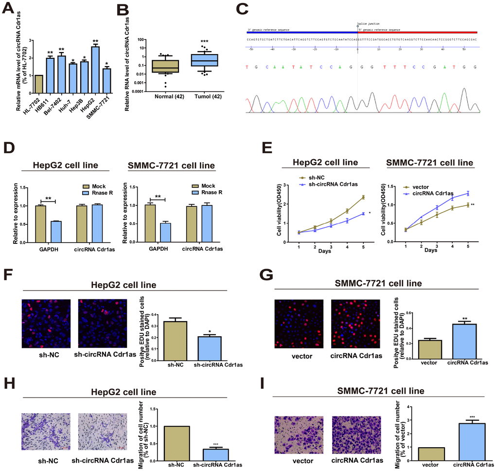 Overexpression of circRNA Cdr1as accelerated HCC cells to proliferate and migrate