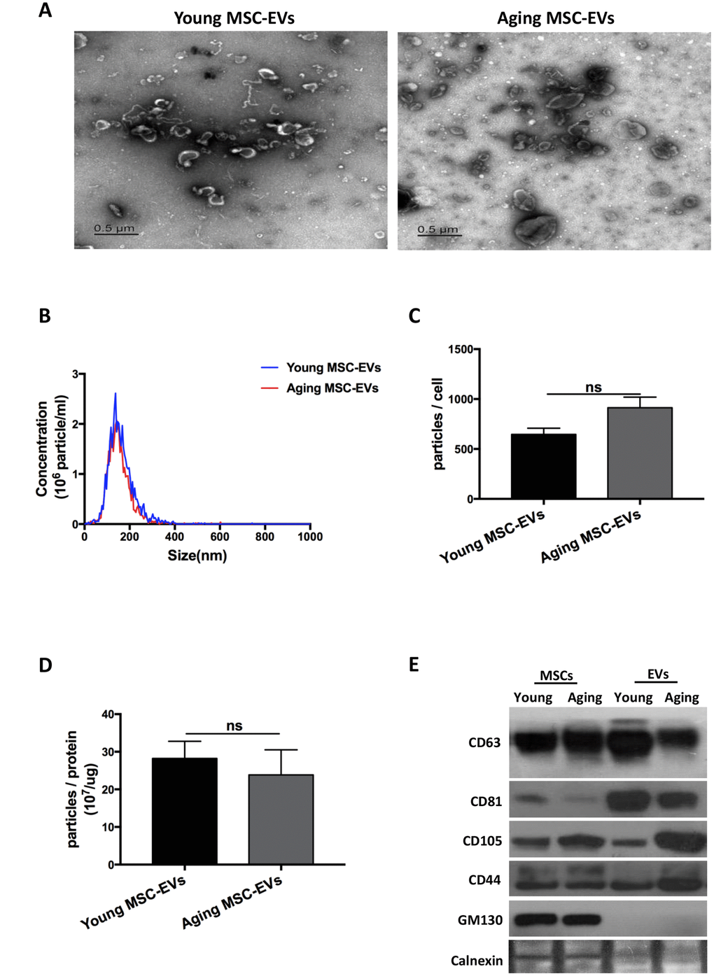 Aging and young MSCs-EVs have similar physical and phenotypic properties