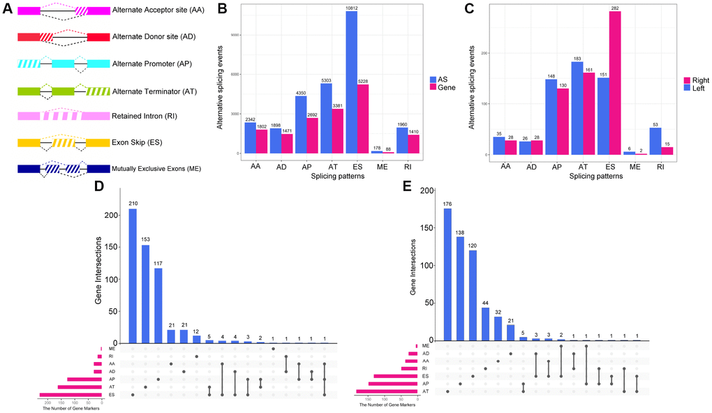 In conclusion, to our knowledge, this is the first study to comprehensively analyze the differences in AS events and SFs between LC and RC. Prognosis-associated DEAS events were identified, and an interaction network of DESFs and DEAS events was constructed. This study has enriched our understanding of the distinction between LC and RC and provided an extensive list of biomarkers and potential treatment targets for CRC.