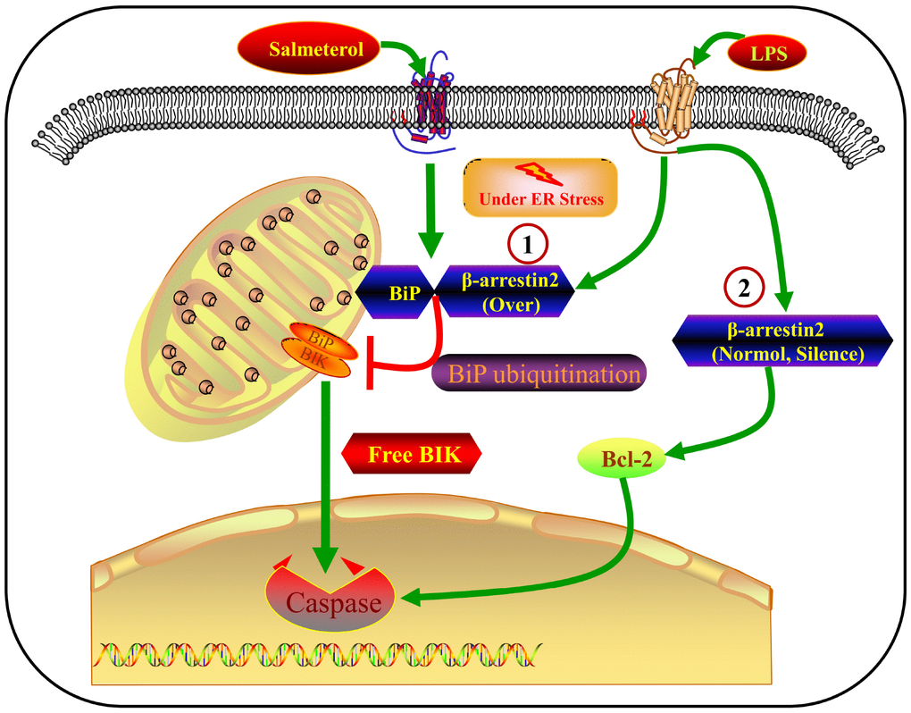 Suppression of BiP by β-arrestin-2 leads to the release of BIK