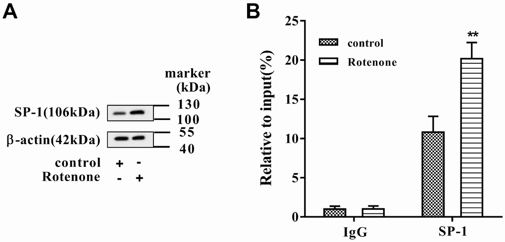 Binding between SP-1 and SNHG14 promoter was enhanced by rotenone