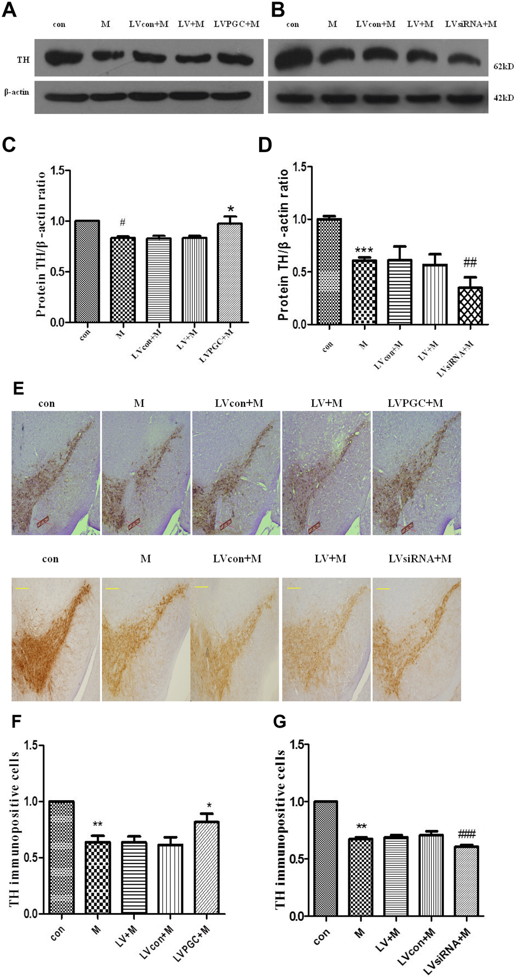 | Groups | con | M | LVcon+M | LV+M | LVPGC+M/ LVsiRNA+M |