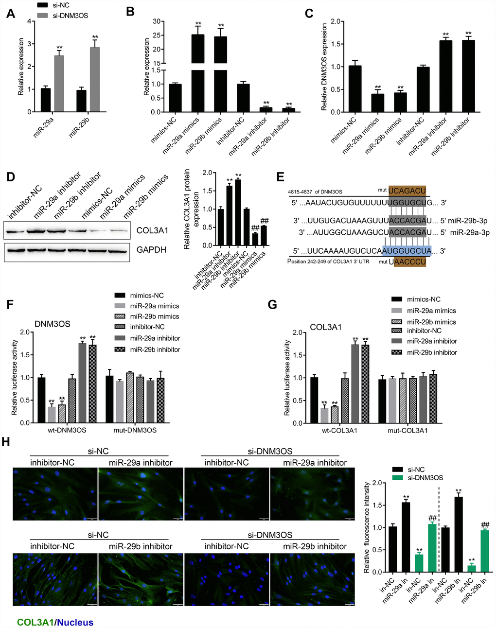 miR-29a and miR-29b directly bind DNM3OS and COL3A1 3'UTR to negatively regulate their expression