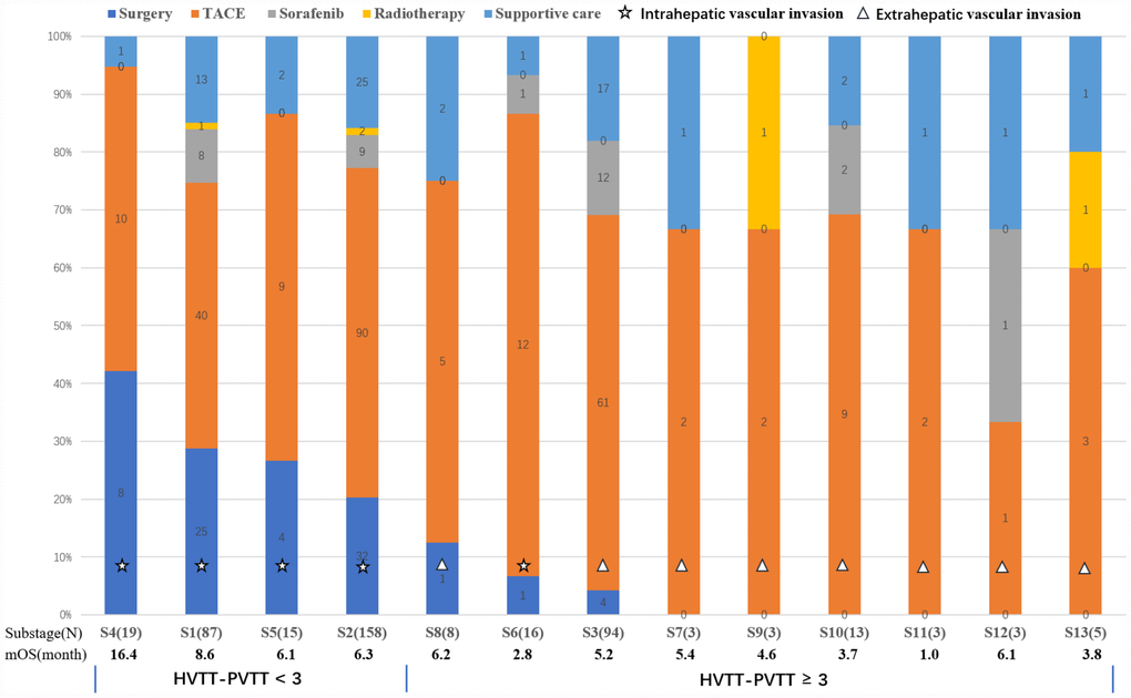 | Sub-stage | Extent of portal vein invasion | Extent of hepatic vein invasion | Numbers | Median OS (month) | HVTT-PVTT scores | ||||||||||||||||||||||||||||||||||||||||||||||||||||||||||||||||||||||||||||||||||||||||||||||