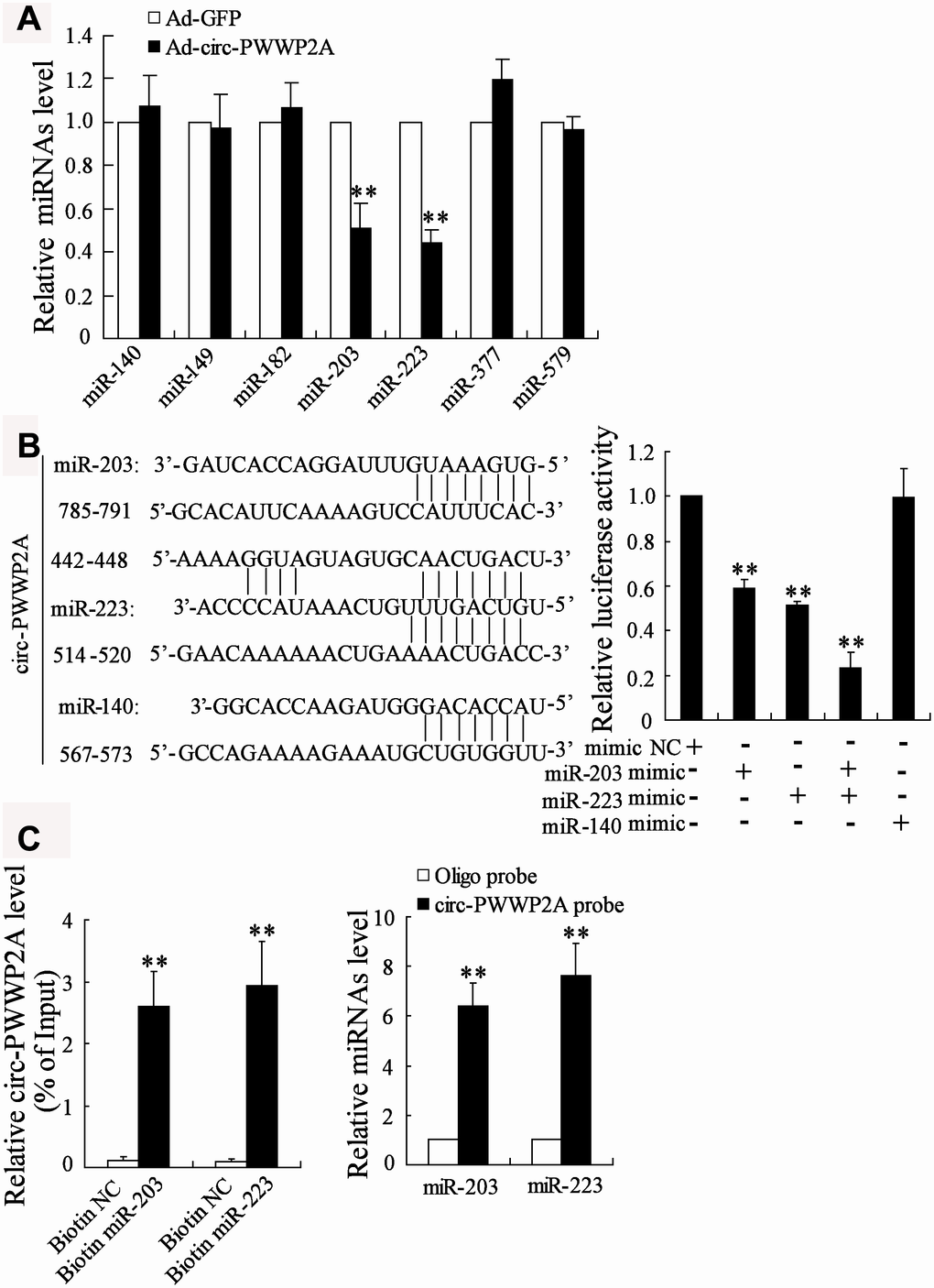 Circ-PWWP2A interacts with miR-203 and miR-223