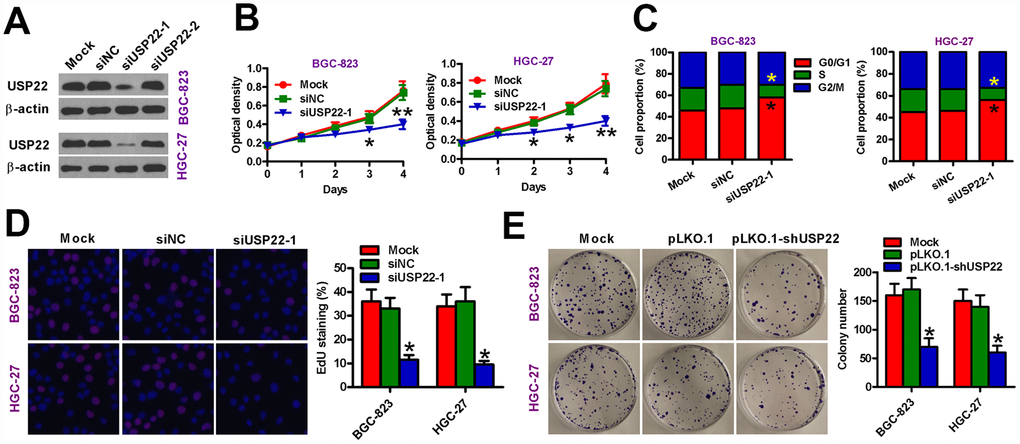 USP22 knockdown inhibits GC cell proliferation in vitro