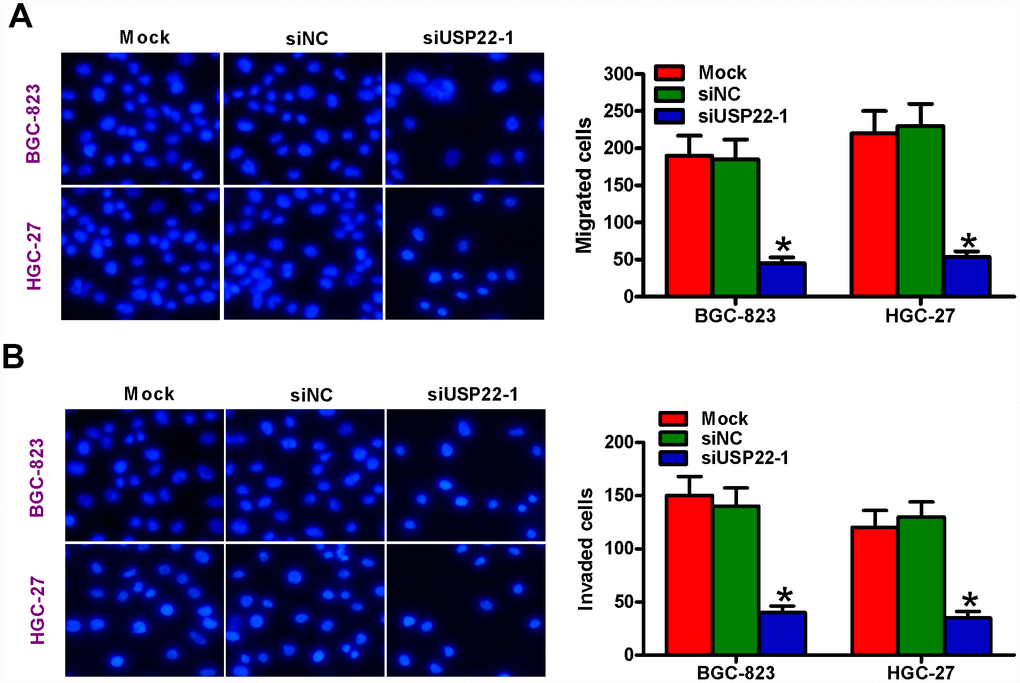 USP22 silencing suppresses in vitro GC cell migration and invasiveness