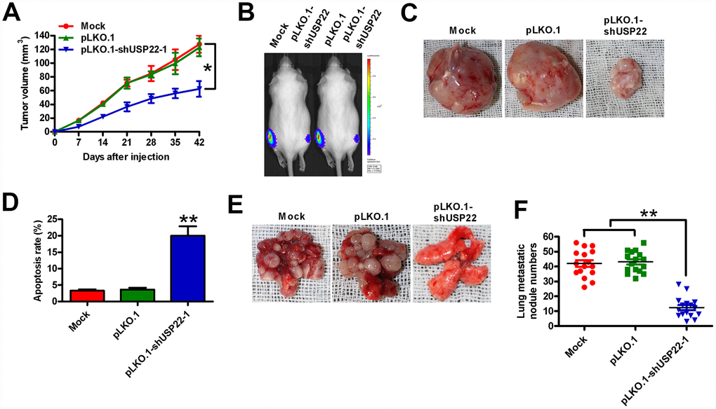 USP22 depletion attenuates in vivo GC growth and metastasis