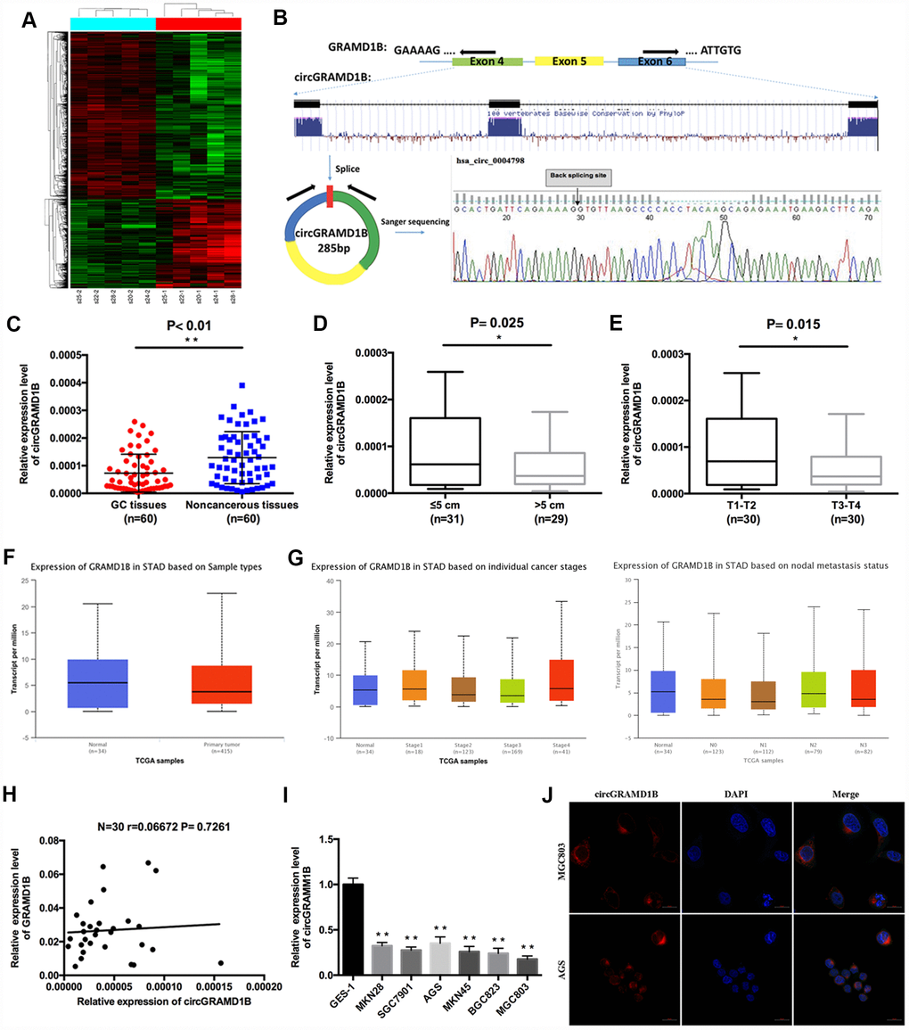 Identification and characterization of circGRAMD1B in GC via a microarray analysis