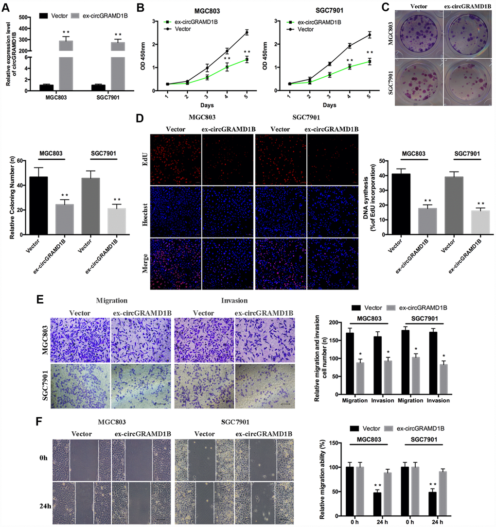 circGRAMD1B is anti-oncogenic and associated with proliferation, migration, and invasion in GC cells