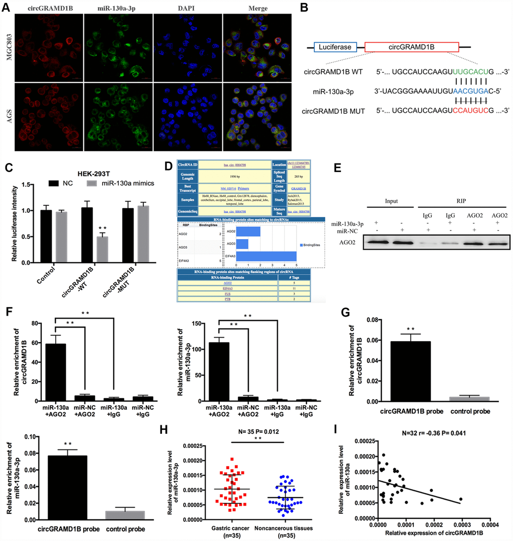 circGRAMD1B acts as a sponge and targets miR-130a-3p in GC cells
