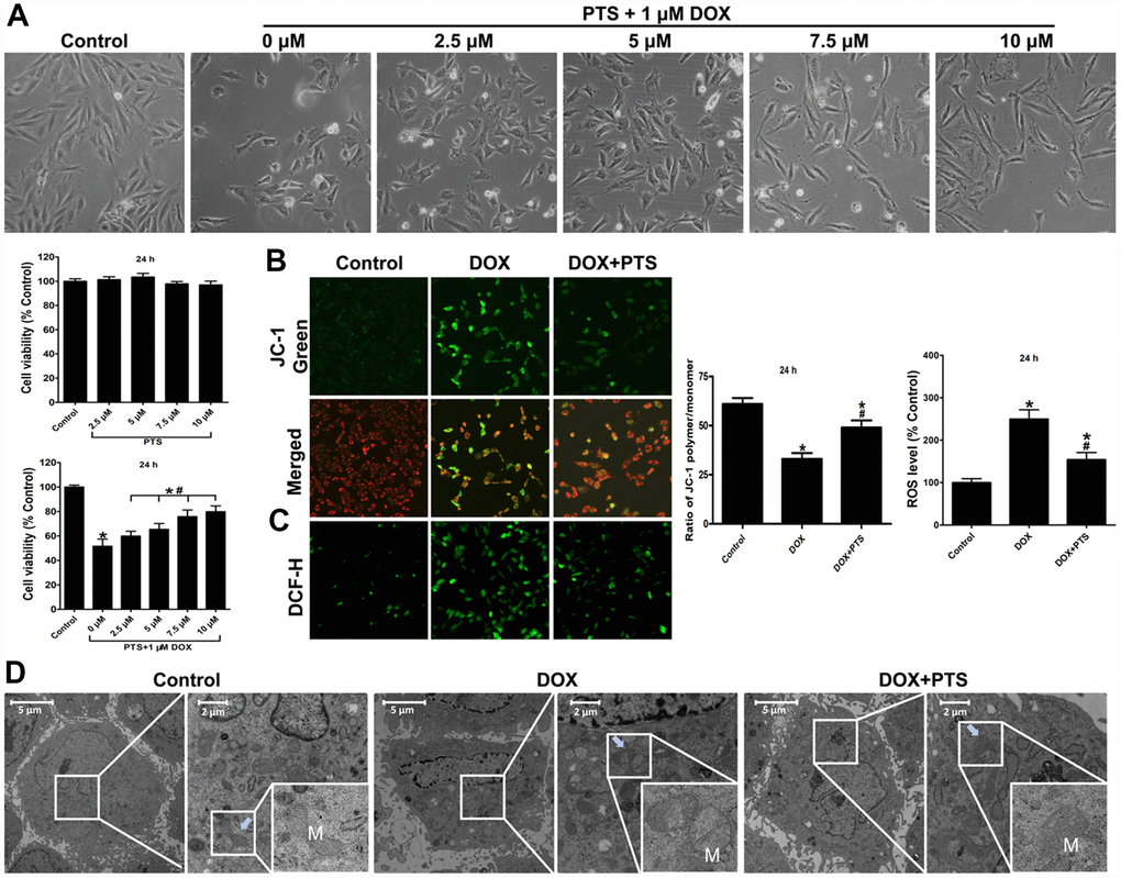 Pterostilbene application alleviated DOX-induced H9c2 cell viability inhibition, mitochondrial damage and oxidative stress