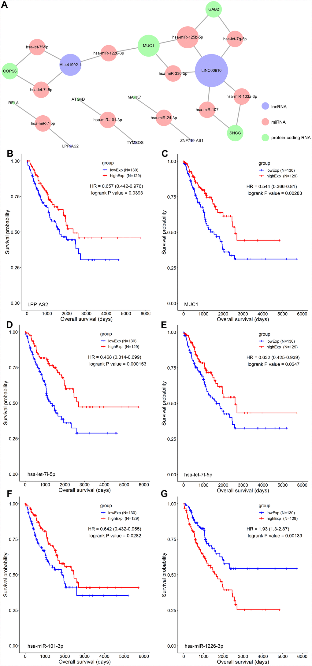 Survival analysis and nomograms of key members in the ceRNA network