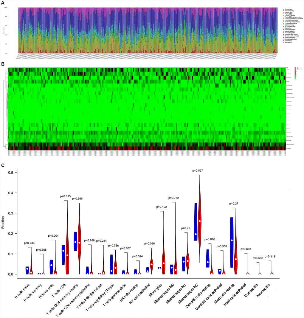 Figure 5 illustrated the composition of immune cells estimated by the CIBERSORT algorithm in STSs. The fraction of the NK cells activated was consistently lower in the local recurrence tissue than in primary sarcomas, whereas the fractions of dendritic cells resting and the mast cells resting were higher in the local recurrence sarcoma tissue. Wilcoxon rank-sum test was then used and revealed that the fractions of dendritic cells resting (P = 0.016) and NK cells activated (P = 0.036) varied significantly between recurrent and primary tumors (Figure 5C).
