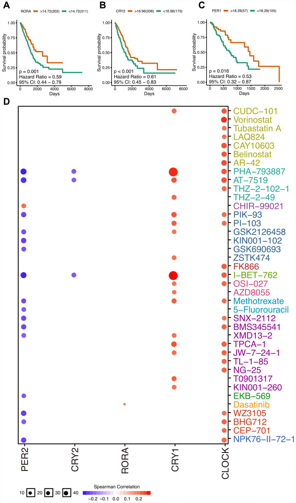 - 23. Ye Y, Xiang Y, Ozguc FM, Kim Y, Liu CJ, Park PK, Hu Q, Diao L, Lou Y, Lin C, Guo AY, Zhou B, Wang L, Chen Z, Takahashi JS, Mills GB, Yoo SH, Han L. The Genomic Landscape and Pharmacogenomic Interactions of Clock Genes in Cancer Chronotherapy. Cell Syst. 2018; 6:314–328.e2. https://doi.org/10.1016/j.cels.2018.01.013 [PubMed]