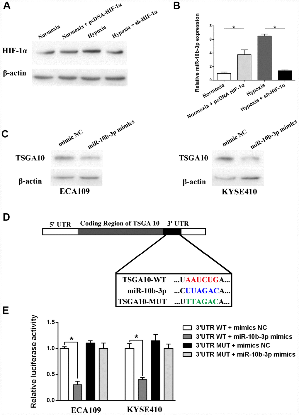 Hypoxia induces miR-10b-3p expression through HIF-1α in ESCC cells