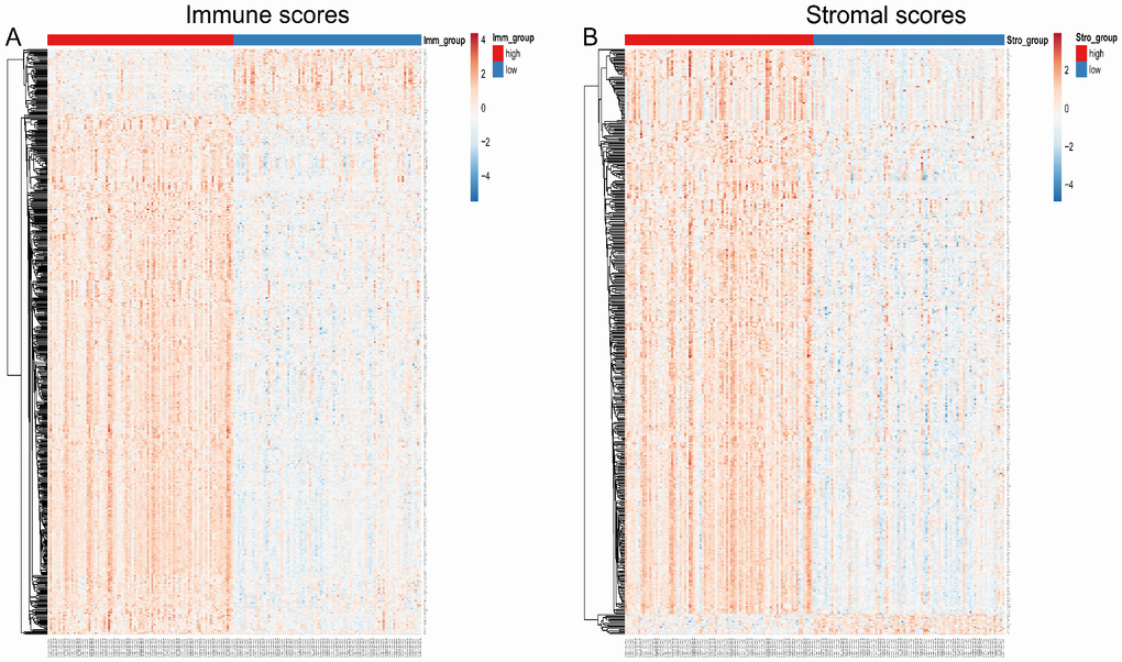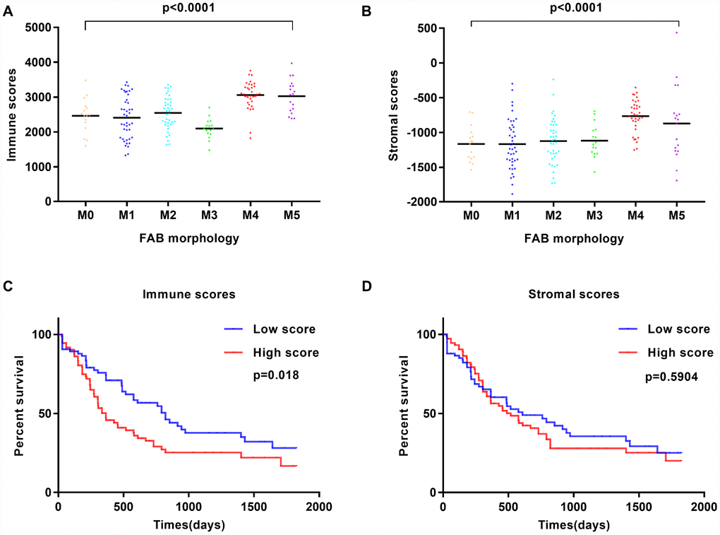 Table 1. The clinical data of patients with AML based on the immune scores and stromal scores.