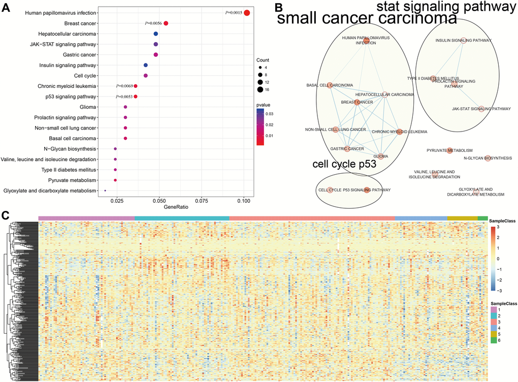 We used the clusterProfiler package in R [31] combined with KEGG to perform gene enrichment analysis of the Gene Ontology, Biological Pathways, and Regulatory motifs in DNA and Protein gene groups.