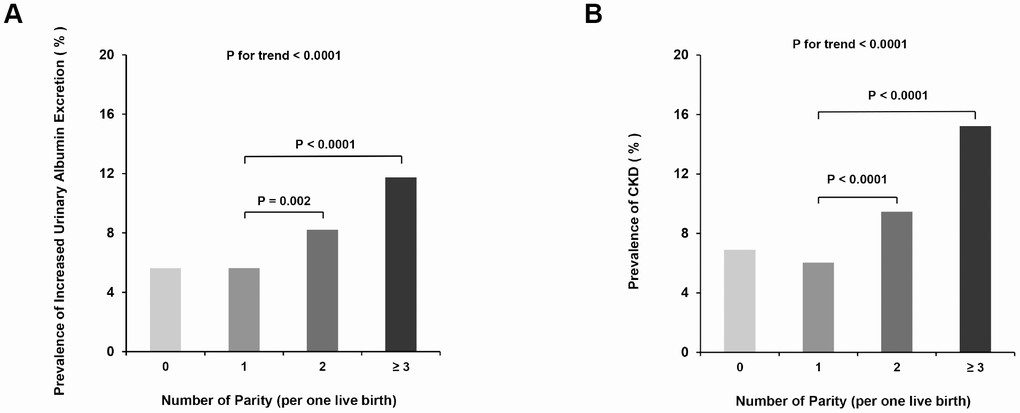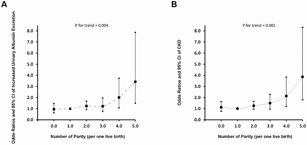 Associations of parity degree with increased urinary albumin excretion and CKD