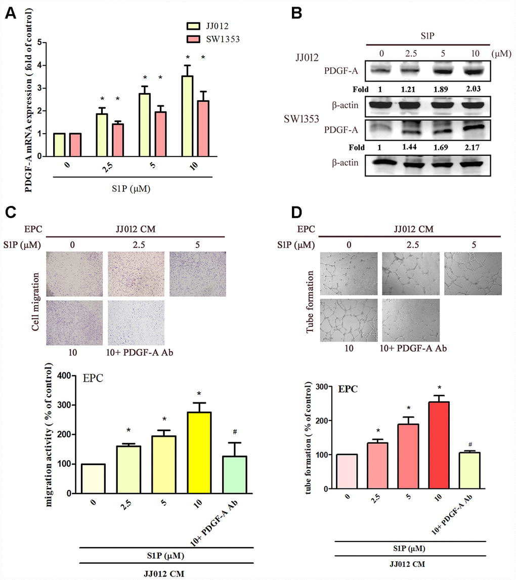 S1P enhances PDGF-A-dependent EPCs angiogenesis