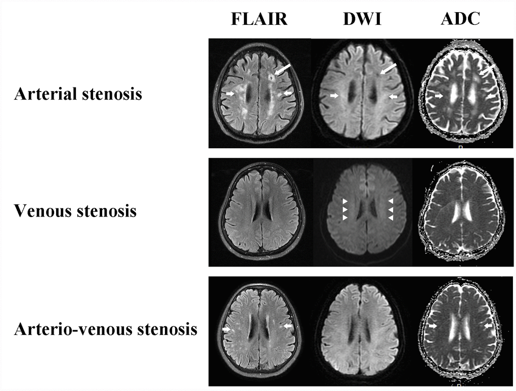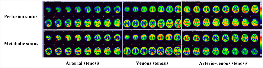 Cerebral venous stenosis (CVS) mainly results from extracranial venostenosis (internal jugular vein stenosis, IJVS) and intracranial venostenosis (cerebral venous sinus stenosis, CVSS) [4–7]. Previous publications have described its typical clinical manifestations such as headache, noise, visual impair, sleep disorder and dysphrenia [4, 8]. It can be confirmed by magnetic resonance venography (MRV), computed tomography venography (CTV) and digital subtraction venography (DSV) generally, however, the presentations of brain tissue and perfusion-metabolism status are not fully known. Furthermore, since covered by CAS, some venous stenosis may be misdiagnosed. As for these patients, only treating on arterial stenosis is far from adequate, in contrast, restoring the patency of venous outflow is the key to relieve the refractory neurological symptoms. The aim of this study is to describe the clinical characteristics and imaging findings in CAS, CVS and CAVS, in attempt to further aid the differentiation of these disorders in the clinical settings.