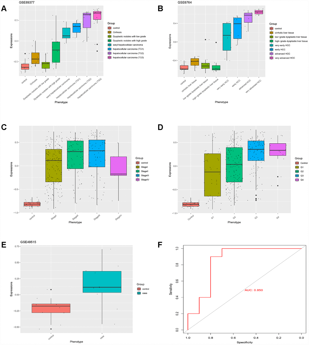 The incidence of HCC, which can be caused by various factors, varies widely worldwide, and this disease is often associated with chronic HBV or HCV infection. The pathogenesis of HCC is very complex, comprising multiple genetic and epigenetic alterations, chromosomal aberrations, gene mutations, and altered molecular pathways [7]. Chronic liver injury, inflammation, hepatocyte degeneration/regeneration, cirrhosis, necrosis and small cell dysplasia can be observed during multistep hepatocarcinogenesis [8]. There are various causes of cirrhosis, such as excessive alcohol consumption, contact with or consumption of Aspergillus toxins, and various metabolic disorders [9], but the mechanism of progression from cirrhosis to HCC remains elusive. Therefore, there is an urgent need to identify the hub gene or gene set dictating the progression from cirrhosis to HCC and to develop potential therapeutic targets.
