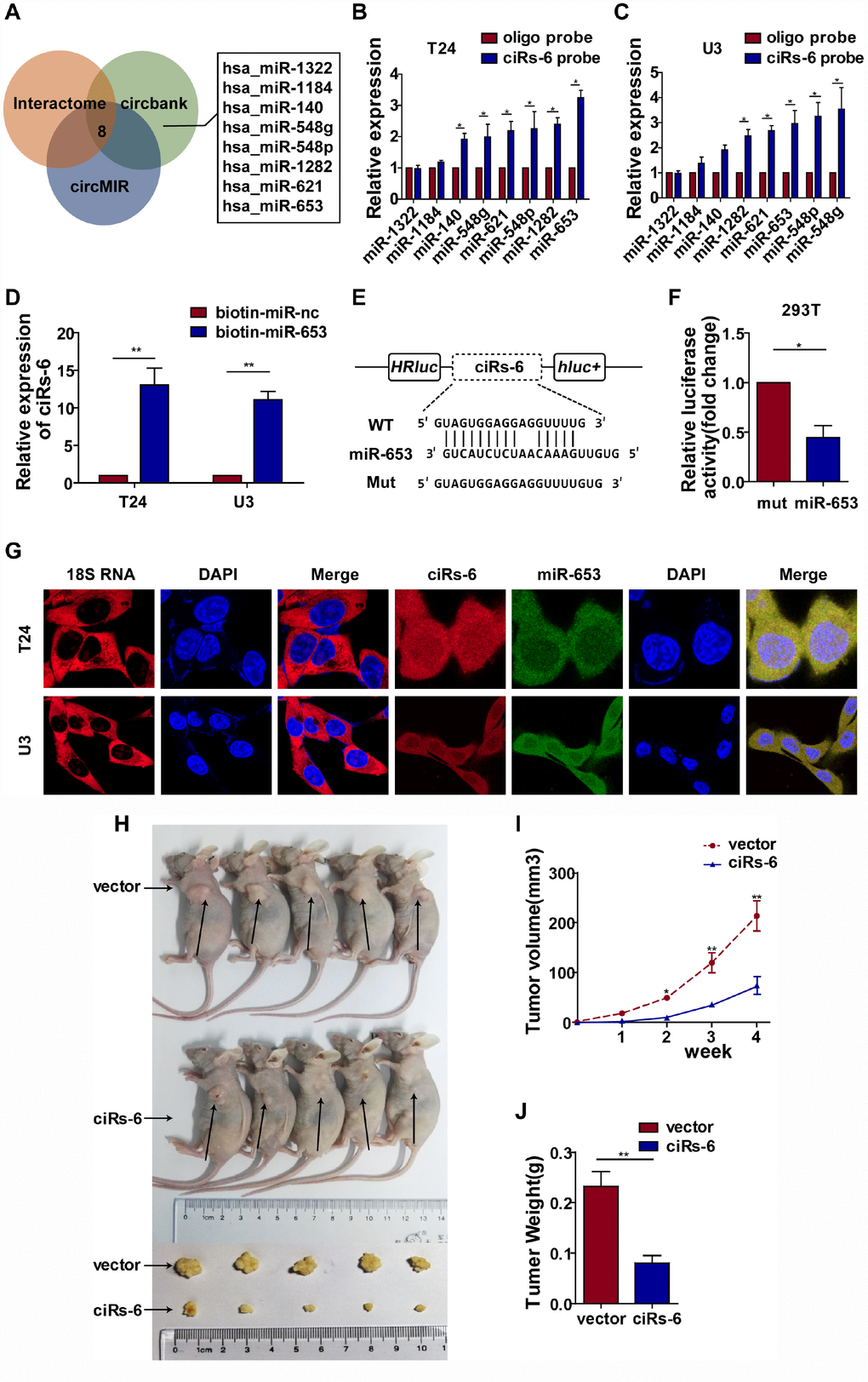 ciRs-6 suppresses bladder cancer growth by sponging miR-653