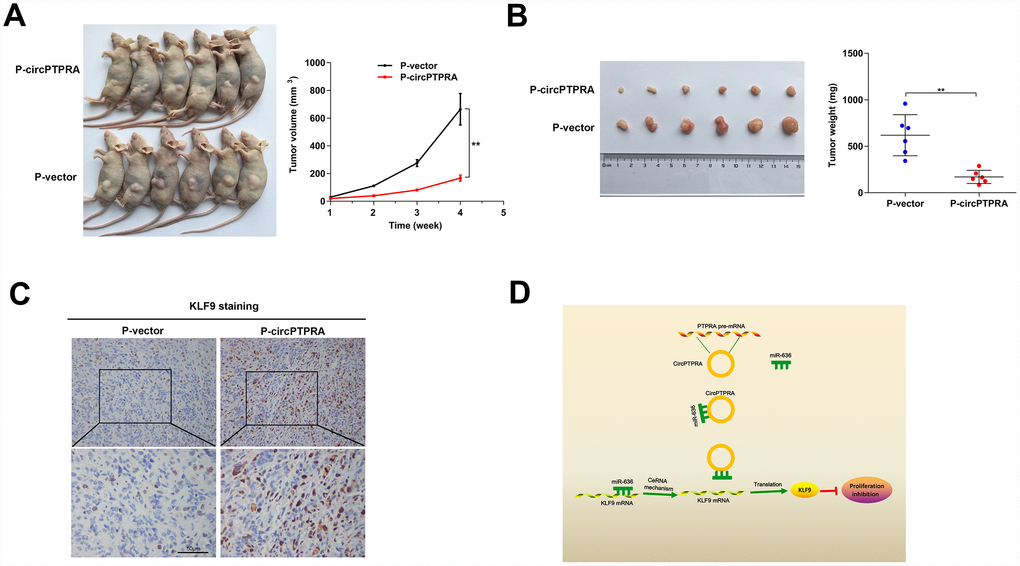 Moreover, IHC analysis indicated that overexpression of circPTPRA was correlated with upregulation of KLF9 in tumor samples (Figure 7C).