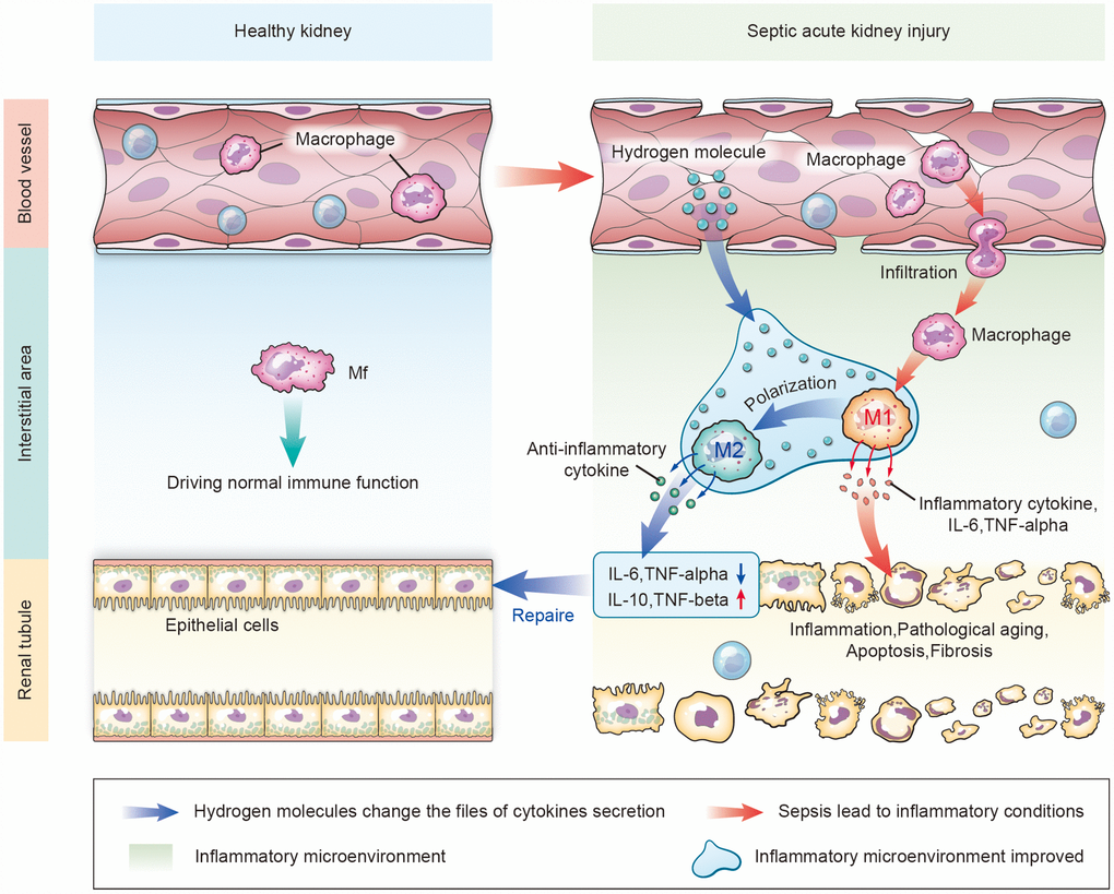In the current study, we tested the hypothesis that aerosol inhalation of a HRS would be a safe and effective method of delivering hydrogen, and would resolve renal inflammation during septic AKI by promoting macrophage polarization from pro-inflammatory M1 to anti-inflammatory M2 macrophages.
