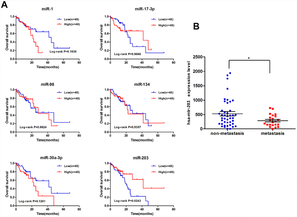 miR-203 predicts overall survival of EC patients