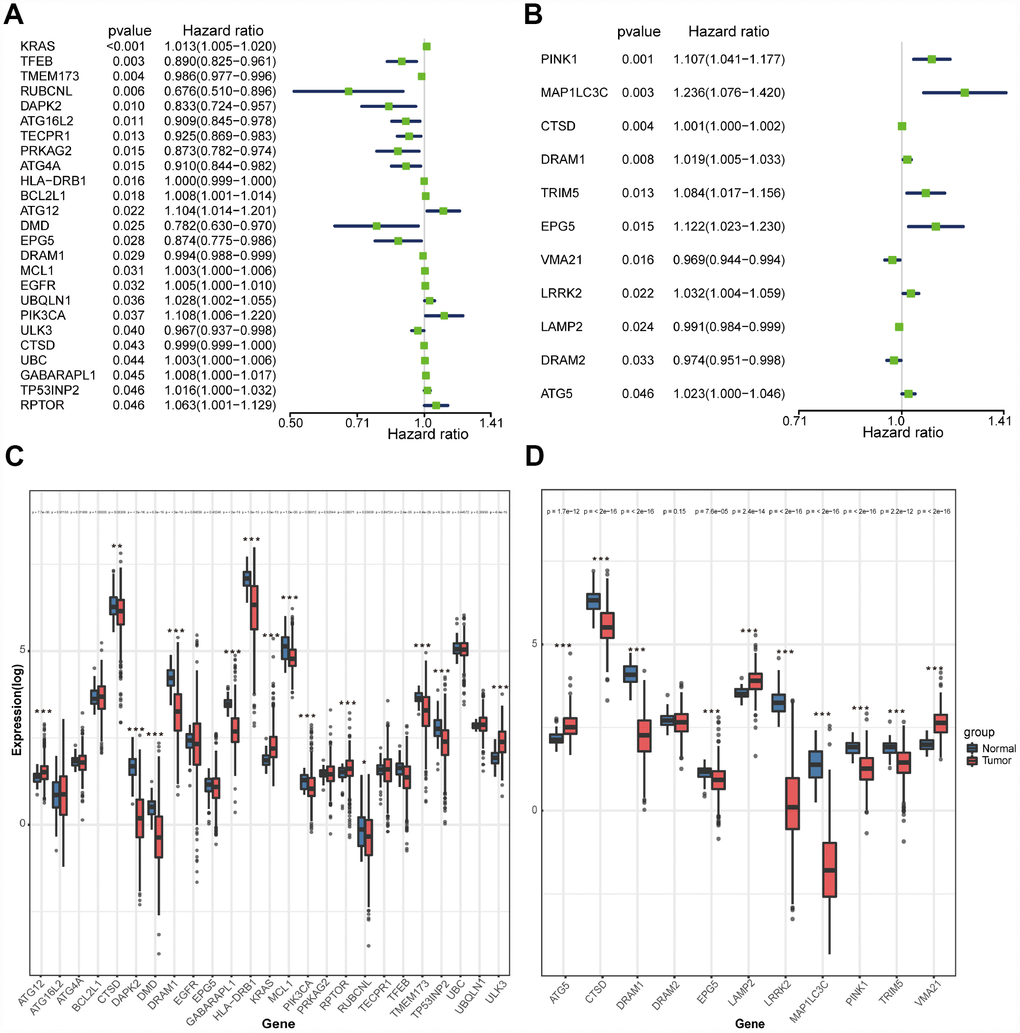 - 33. Lin P, He RQ, Dang YW, Wen DY, Ma J, He Y, Chen G, Yang H. An autophagy-related gene expression signature for survival prediction in multiple cohorts of hepatocellular carcinoma patients. Oncotarget. 2018; 9:17368–95. https://doi.org/10.18632/oncotarget.24089 [PubMed]