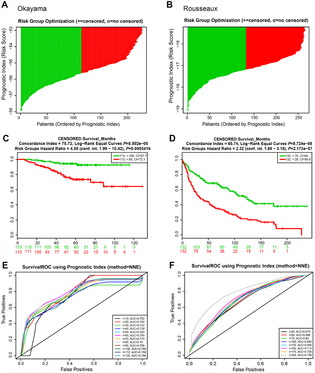 Validation of the prognostic gene signature in the independent lung cancer cohorts