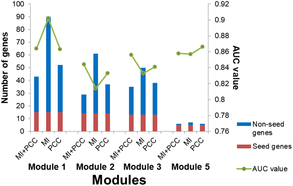 | AUC values with seed genes in risk modules | 0.804 | 0.778 | 0.783 | 0.974 | 0.976 | 0.977 |
