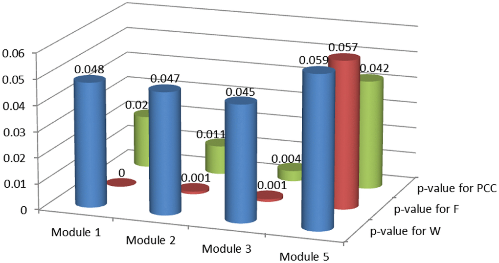 PCC between each gene pair in candidate modules for tumor and normal samples were calculated, respectively. PCC difference of a module was defined as the sum of PCC differences for gene pairs in it.