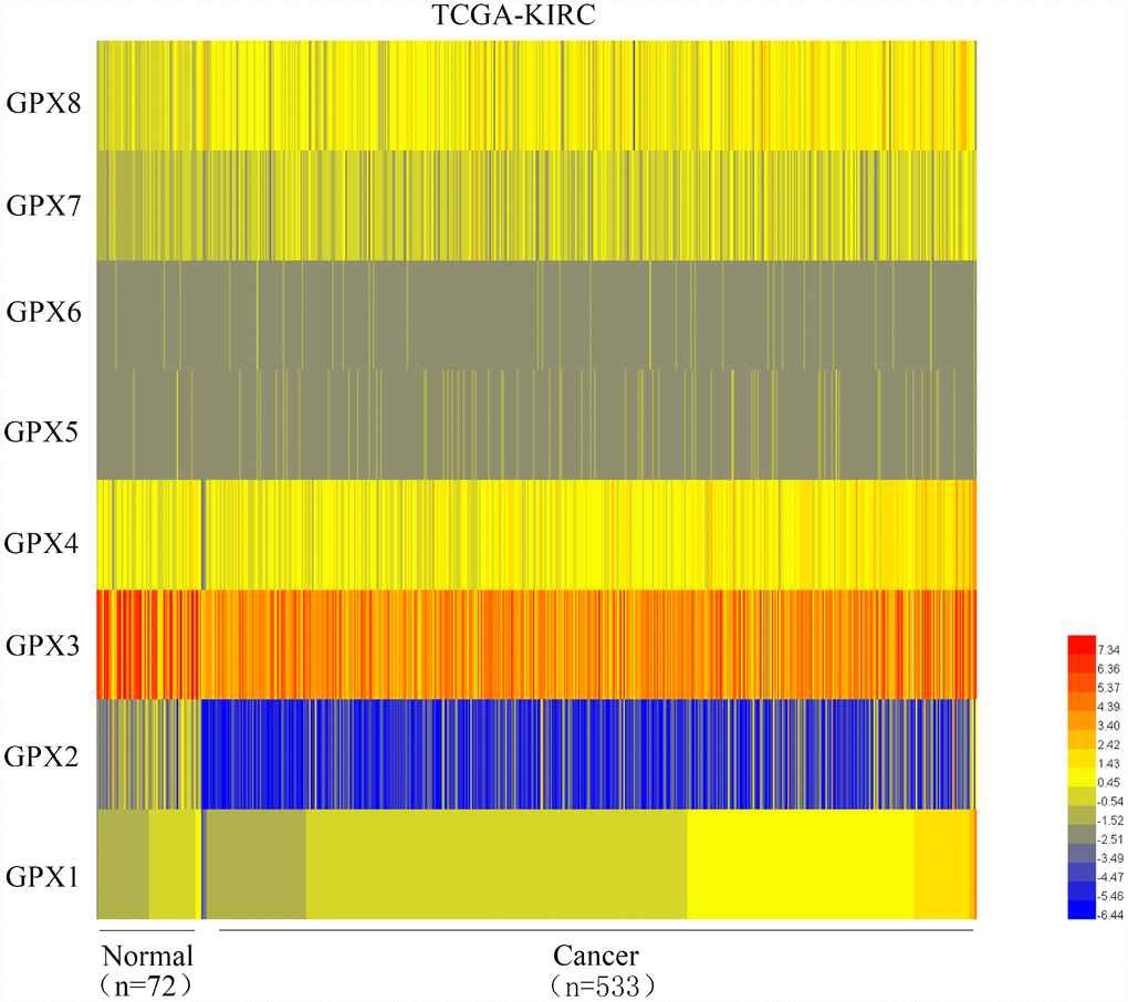 Briefly, RCC tissues and adjacent normal tissues were fixed by using 10% formalin. Then, those tissues were dehydrated, and embedded in paraffin. Those tissue sections were incubated with GPX1 rabbit polyclonal antibody (1:100, ABclonal, Wuhan, China) overnight. After washing with PBS thrice, those sections were incubated with secondary antibodies conjugated to horseradish peroxidase labeled polymers. Finally, those sections were counterstained with hematoxylin.