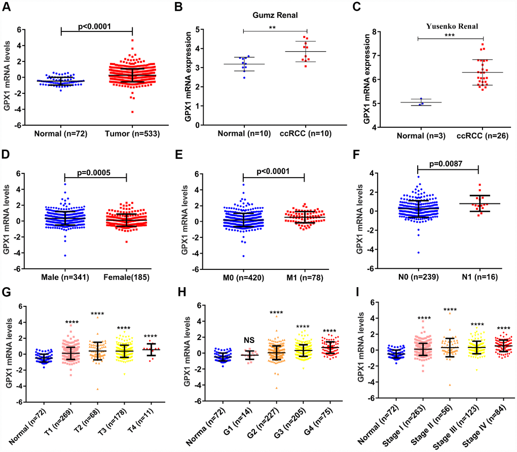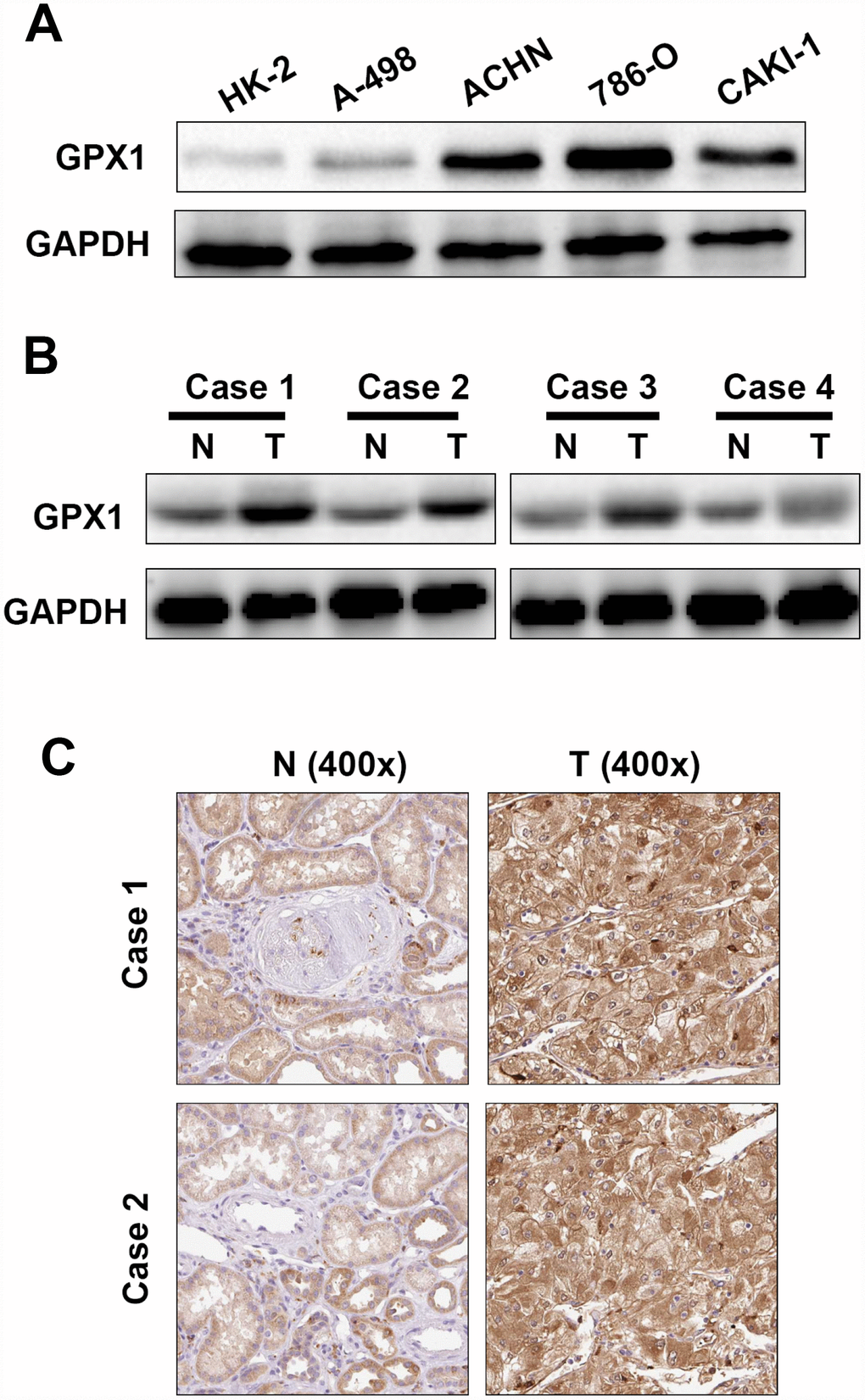 The expression levels of GPX1 were confirmed in RCC cell lines and tissues
