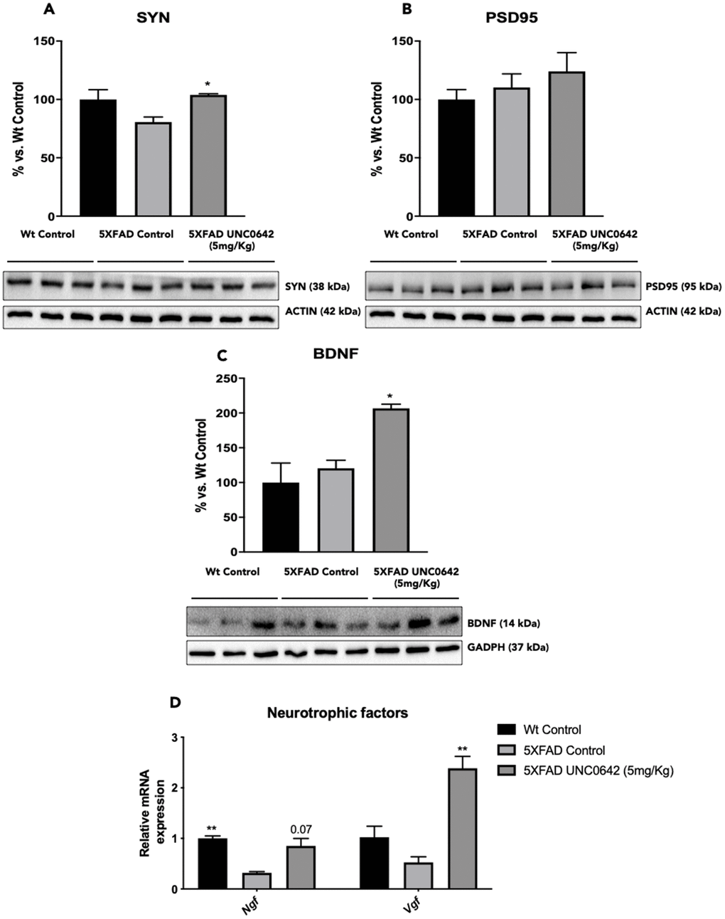 Increased synaptic marker and neurotrophins induced by UNC0642 in 5XFAD mice
