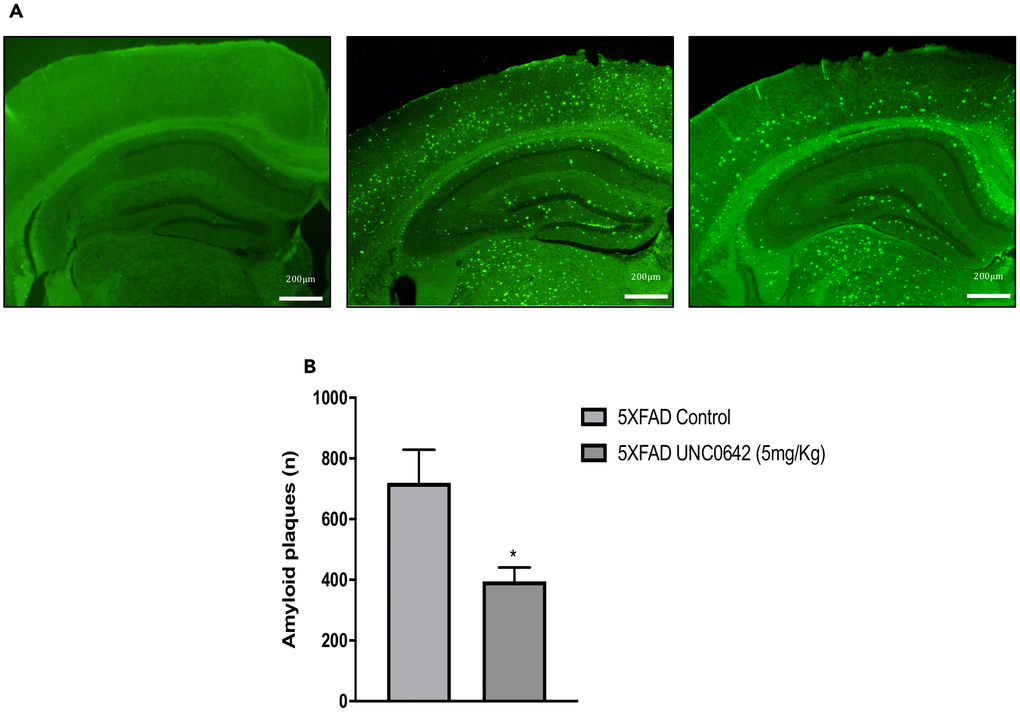 UNC0642 treatment reduced β-amyloid plaques in 5XFAD mice