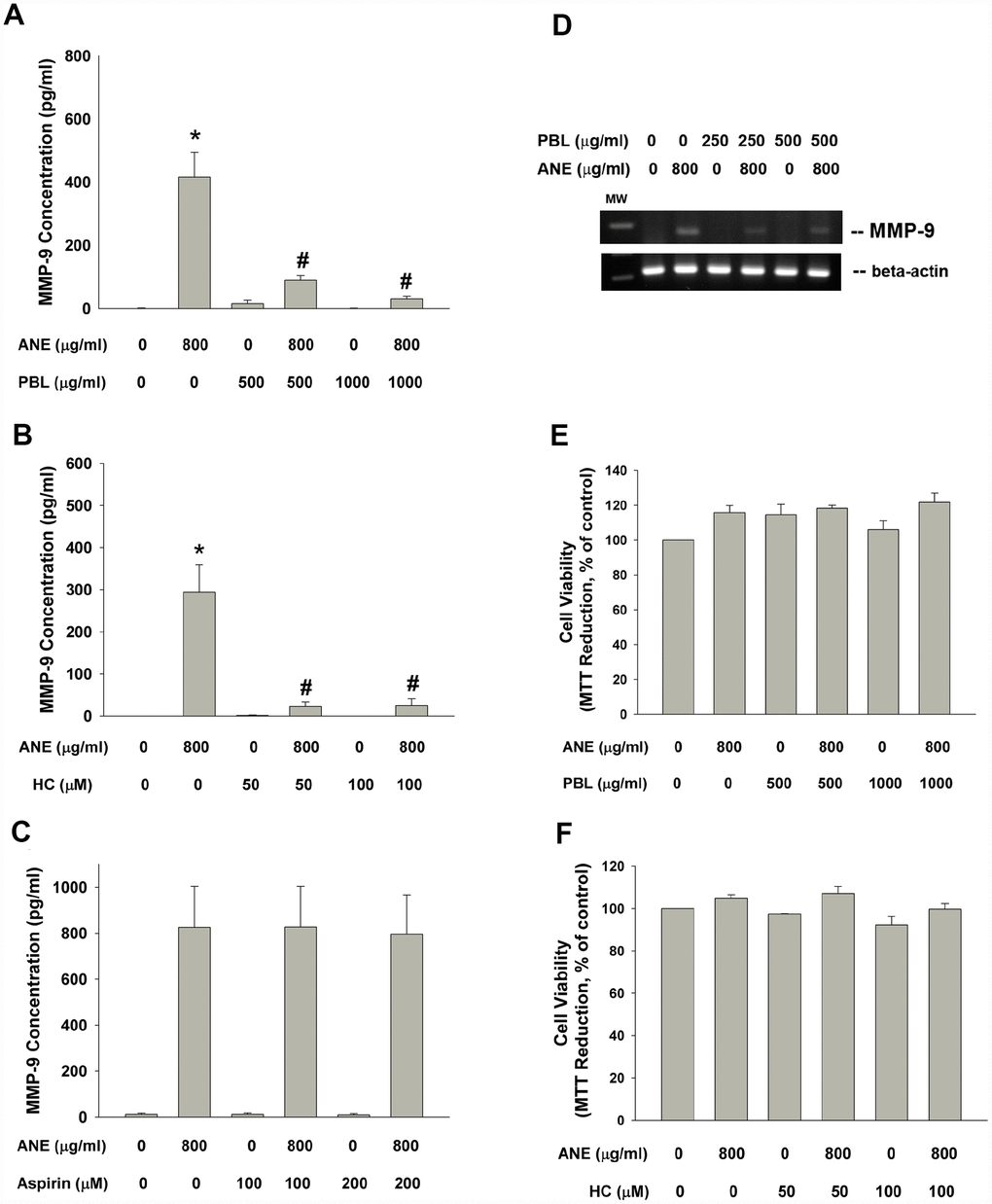 Effect of betel leaf, hydroxychavicol and aspirin on ANE-induced MMP-9 production