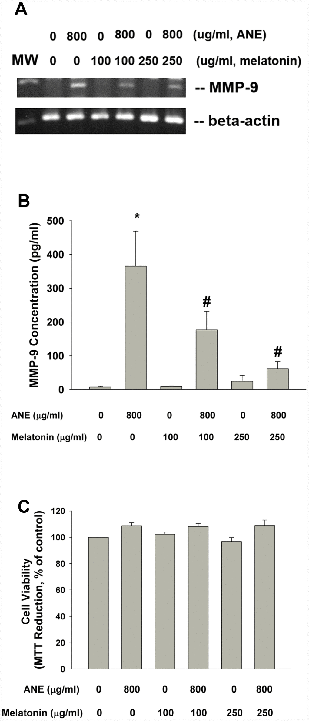 Effect of melatonin on ANE-induced MMP-9 mRNA expression and protein secretion