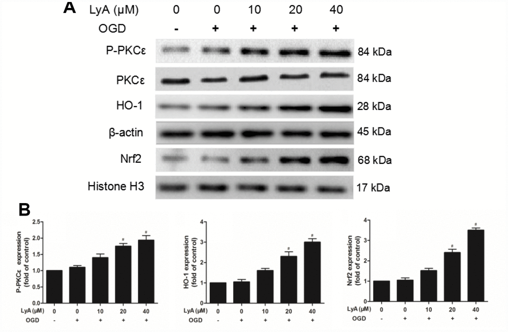 Effects of LyA treatment on PKCε activation and Nrf2/HO-1 signaling pathway in cells