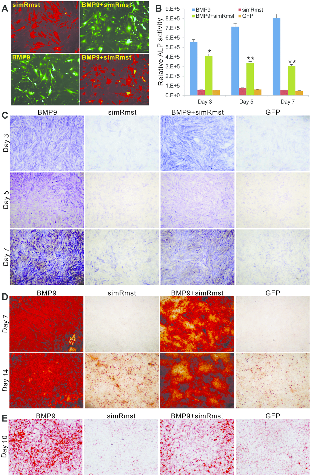 Rmst silencing inhibits BMP9-induced ALP activity, matrix mineralization and adipogenic differentiation in MSCs