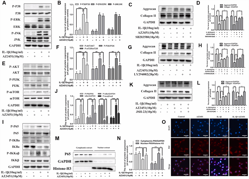 AZ3451 attenuates the activation of the P38/MAPK, NF-κB and PI3K/AKT/mTOR pathways induced by IL-1β in chondrocytes