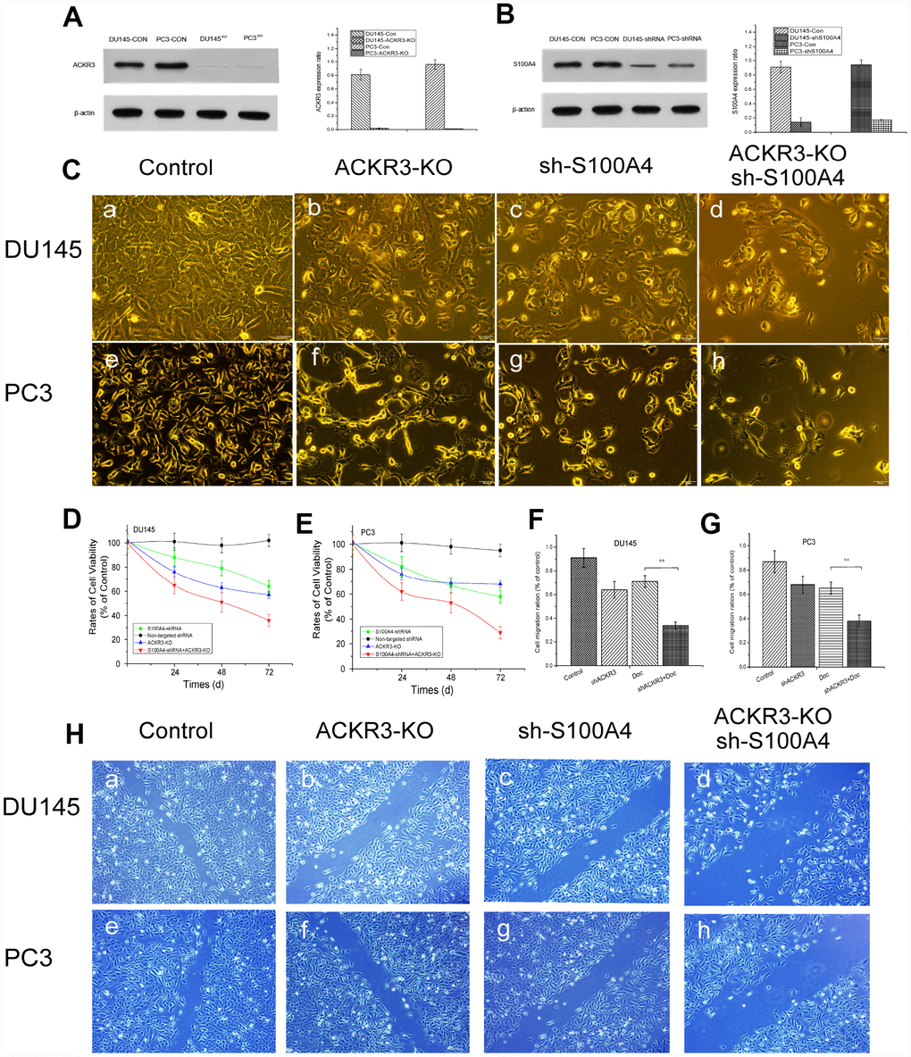 ACKR3 knockout combined with S100A4 silencing synergistically inhibits Doc-resistant PCa cell viability and migration
