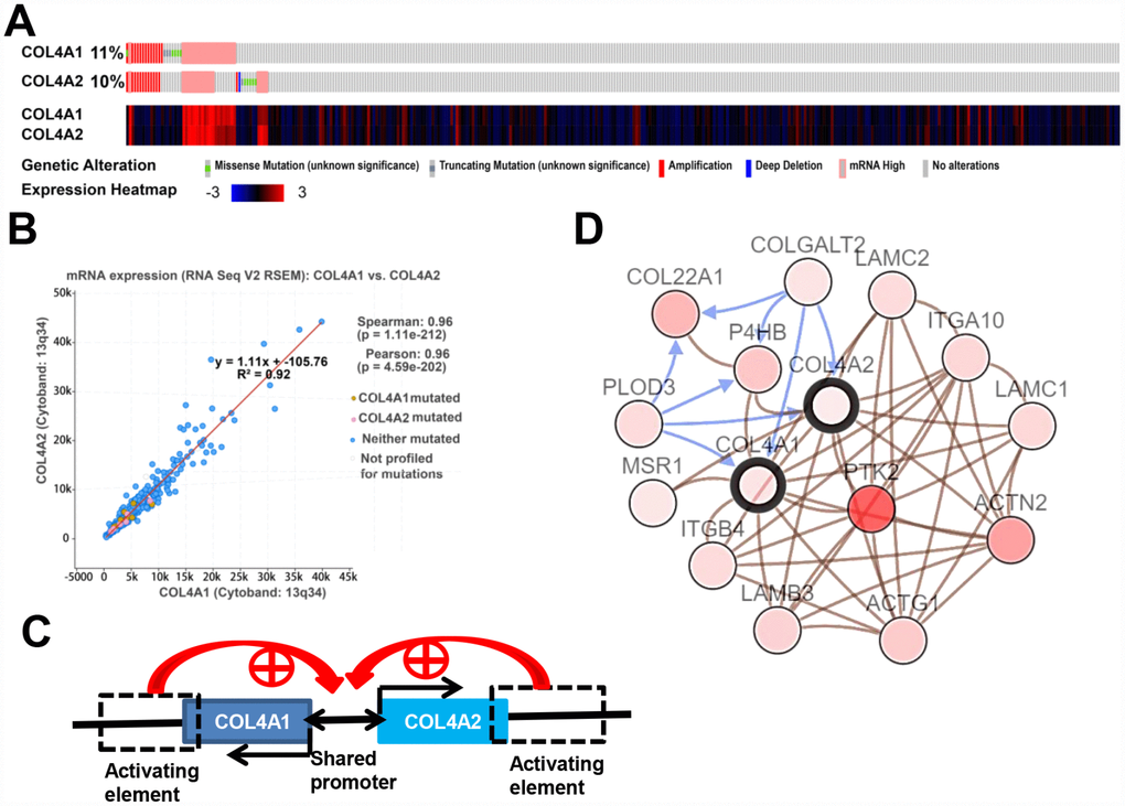 The cooperative genomic alterations of COL4A1 and COL4A2 networks in HCC