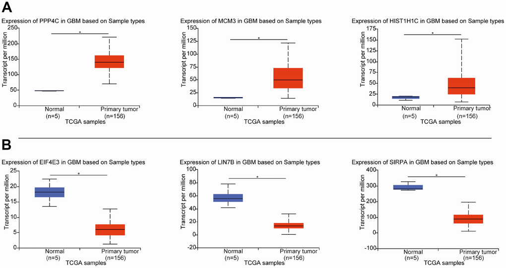 Validation of the DEGs in the TCGA GBM dataset