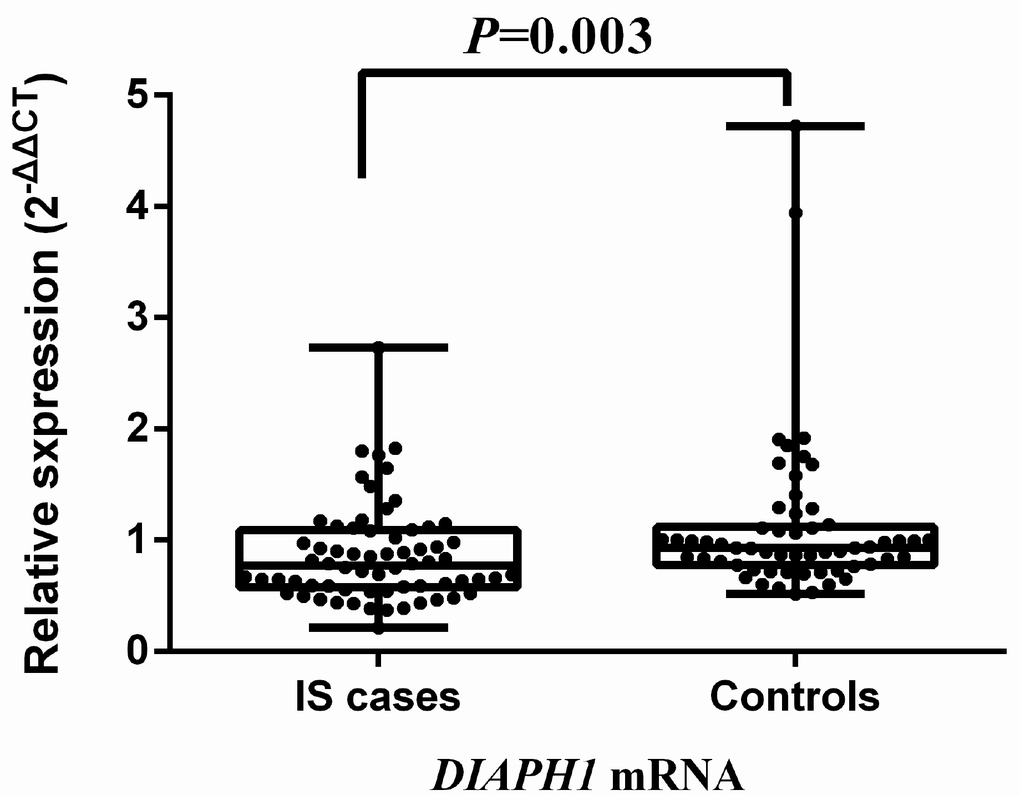 Comparison of DIAPH1 mRNA expression between IS and controls