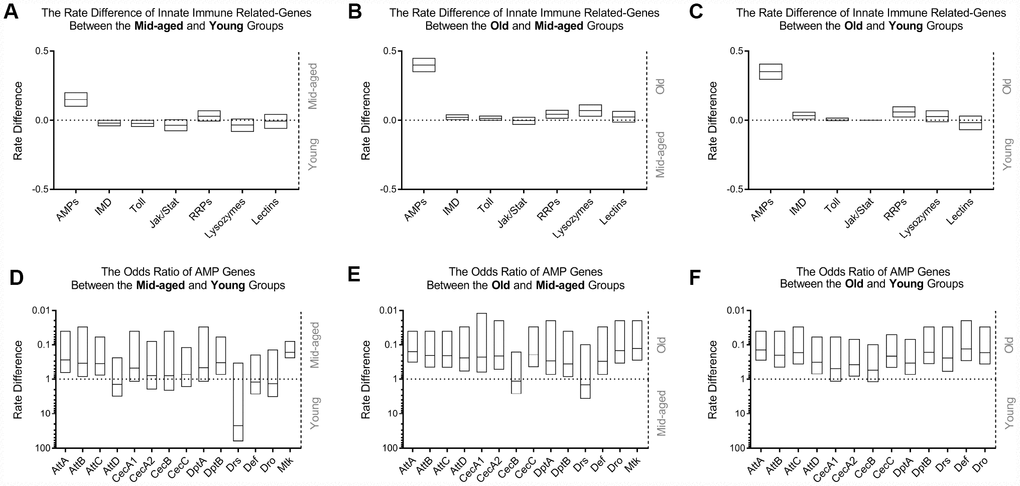 Age-associated overexpression of AMP genes in normal Drosophila was observed in RNA-Seq