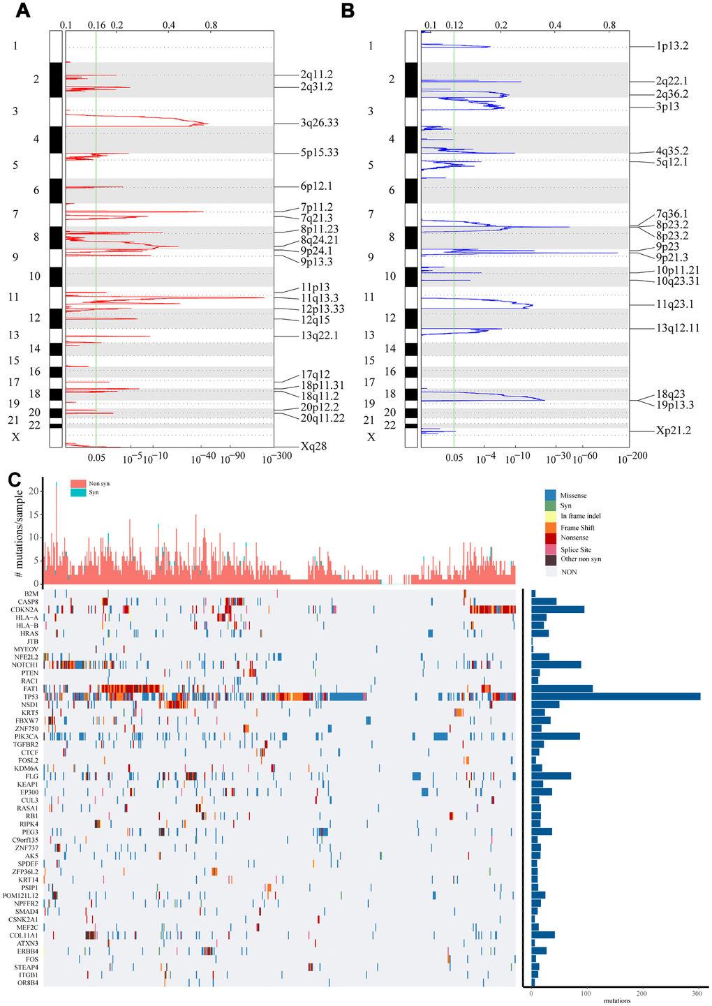 We used Mutsig 2.0 software with TCGA mutation data to identify genes with significant mutations in their MAF files. The threshold used was P < 0.05.