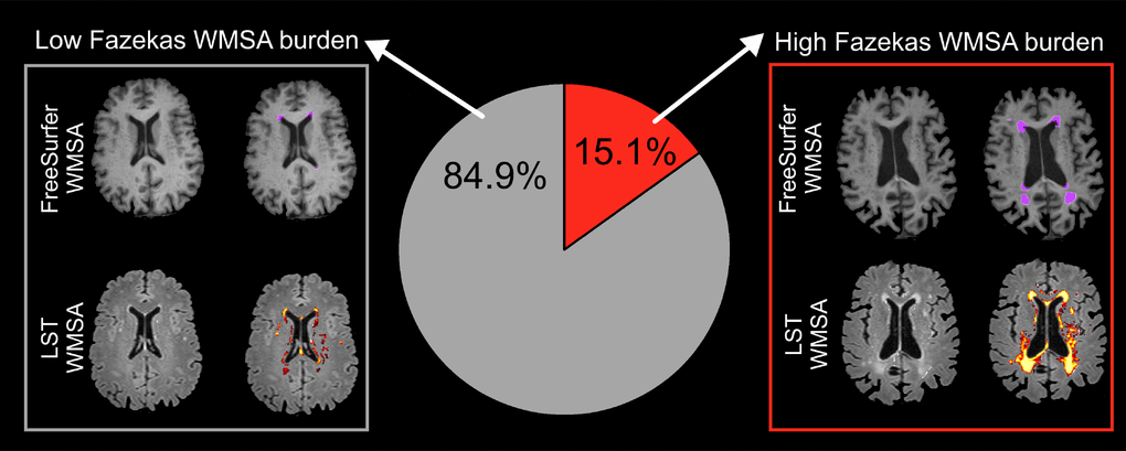 The Fazekas scale [1] is a widely used method to visually rate hyperintense white matter signal abnormalities (WMSA) in magnetic resonance imaging (MRI) data, both in clinical practice and research [1–4]. High Fazekas WMSA burden (i.e. confluent WMSA, Fazekas 2 or 3 scores) is associated with greater cognitive dysfunction than low Fazekas WMSA burden (i.e. absence or punctate WMSA, Fazekas 0 or 1 scores) in population-based cohorts [5]. Concordantly, in clinical settings high Fazekas WMSA burden has successfully predicted cognitive performance in Alzheimer’s disease patients [6]. High cerebrovascular pathology burden has clinical relevance for diagnosis of individuals with higher risk for cerebrovascular disease [4]. Despite great utility, visual ratings of WMSA are subjective, which often compromises inter-rater reliability. Automated methods have emerged as objective alternatives. The Lesion Segmentation Tool (LST) (https://www.applied-statistics.de/lst.html) [7] is widely used to automatically segment WMSA in the form of hyperintensities in the T2-weighted fluid-attenuated inversion recovery (FLAIR) MRI sequence. Previous studies have shown strong correlations between the Fazekas scale and automatic segmentations of hyperintense WMSA [2, 3]. Also, the FreeSurfer software (https://surfer.nmr.mgh.harvard.edu/) [8] is increasingly used to automatically segment WMSA in the form of hypointensities in the T1-weighted MRI sequence [9–13]. To our knowledge, the association between hypointense WMSA and the Fazekas scale has not been investigated yet. Furthermore, a limitation of automated methods is that they are complex, time consuming, require quality control, and lack normative data, all of which compromise their clinical use at present.